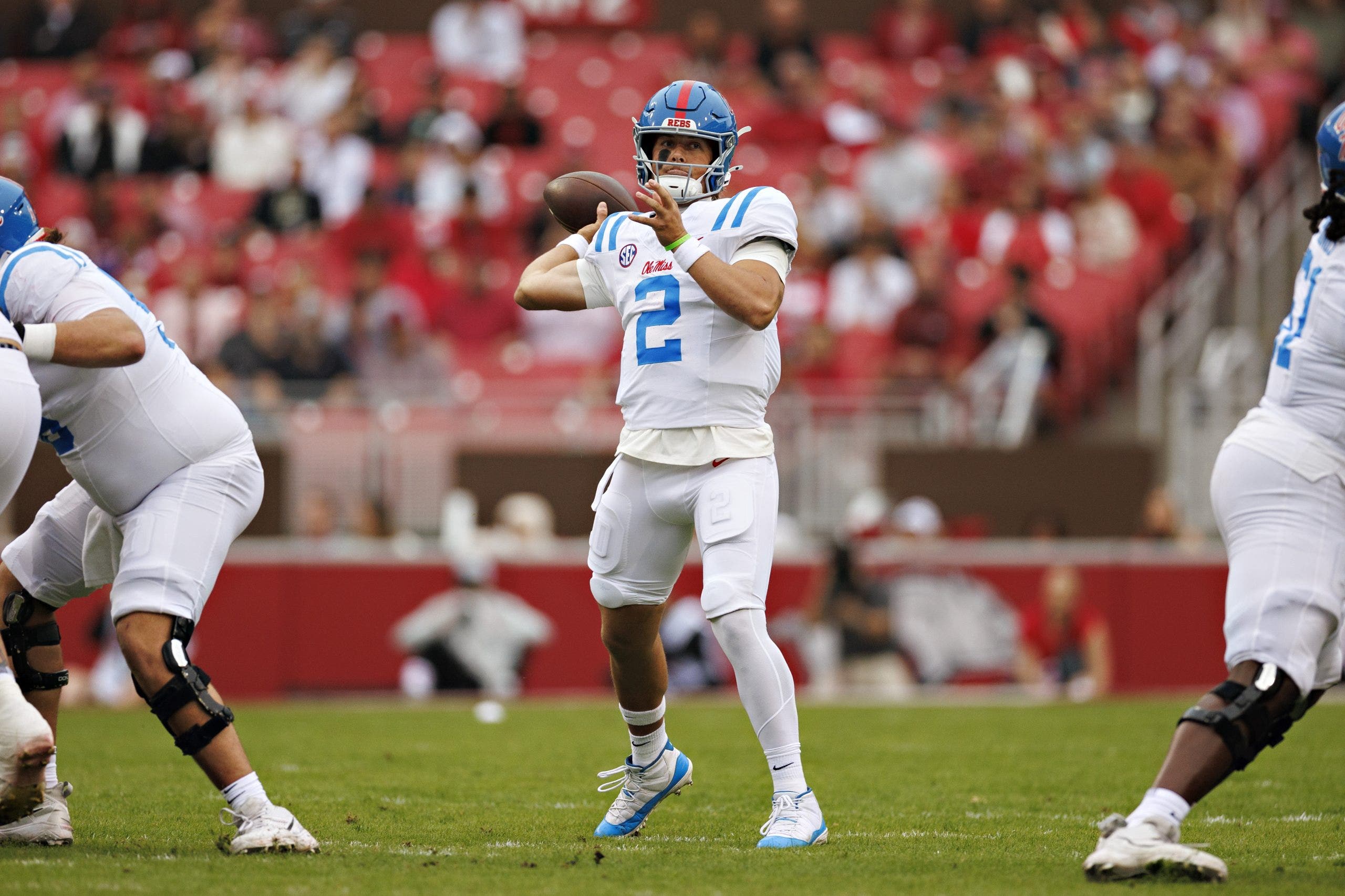 Dart was on fire Saturday in Ole Miss' dominant 63-31 win over Arkansas. The senior signal-caller set program records for passing yards and touchdowns in a single game, leapfrogging Manning and Matt Corral in the process. Dart finished 25-of-31 for 515 yards and six touchdowns in the victory.