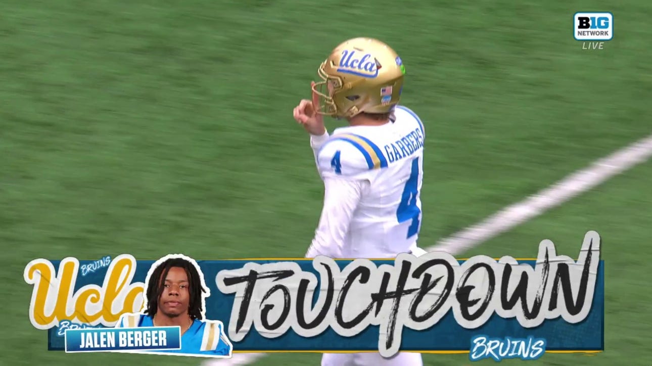 Ethan Garbers finds Jalen Berger for a 10-yard touchdown to extend UCLA's lead to 10-0 over Nebraska